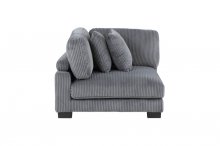 Configurable to your available space, the Traverse Collection allows for the addition and detachment of pieces for a customized seating experience. The available corner unit, armless chair and ottoman can be mixed and matched to fit your needs, creating traditional configurations from a sofa or love seat to an imaginative sectional creation. The plush gray corduroy fabric upholstery creates a plush expanse for a soft touch experience. The corner seat features two toss pillows, adjustable back and arm rest, and reversible cushions. The armless chair features a lumbar pillow, and reversible cushions. The versatility in placement of the ottoman is left to your creative vision, using it as a stand-alone unit or part of a larger configuration.