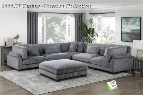| 8555GY*3CR2ACOT | -30 | 6-Piece Modular Sectional with Ottoman | 125.80 | 573.0000 | 135 x 135 x 34.5H |
