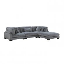Configurable to your available space, the Traverse Collection allows for the addition and detachment of pieces for a customized seating experience. The 4 piece sectional configuration consists of two corner units paired with an armless chair, and ottoman. The plush gray corduroy fabric upholstery creates a plush expanse for a soft touch experience.