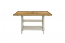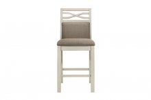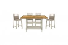 Enhance your casual dining space with the charming, country-inspired ambiance of the Maribelle Collection. This collection features a versatile counter height table with a two-tone gray and light oak finish over ash veneer, complete with an open display base for convenient storage. The coordinating counter height chairs offer comfortable seating with a gray finish and neutral khaki fabric upholstered seats, creating a subtle yet elegant complement to your home.