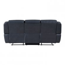 Settle in and get comfortable, the Littleton Collection is ripe with functional accents to elevate your seated experience. Blue breathable faux leather covers the collection with white contrast stitching defining the modern contoured profile and seats of the collection. The sofa features dual end manual motion reclining mechanisms, their function taking you from seated to prone with the pull of the side-mounted motion tabs. The sofa features a drop-down center back, that when opened reveals a storage pouch, two cupholders, tabletop, receptacles, and USB ports.
