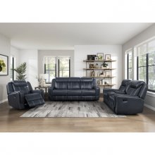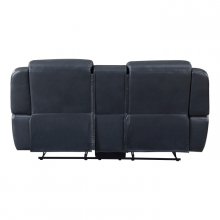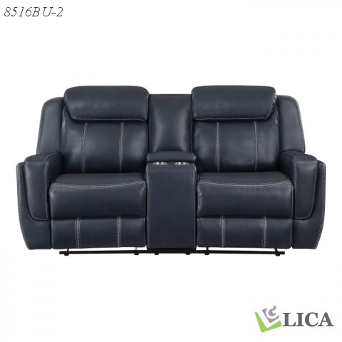 Settle in and get comfortable, the Littleton Collection is ripe with functional accents to elevate your seated experience. Blue breathable faux leather covers the collection with white contrast stitching defining the modern contoured profile and seats of the collection. The love seat features dual end manual motion reclining mechanisms, their function taking you from seated to prone with the pull of the side-mounted motion tabs. The love seat’s center console features hidden storage, two cupholders, receptacles, and USB ports.