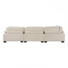 Configurable to your available space, the Traverse Collection allows for the addition and detachment of pieces for a customized seating experience. The 4 piece sectional configuration consists of two corner units paired with an armless chair, and ottoman. The plush beige corduroy fabric upholstery creates a plush expanse for a soft touch experience.