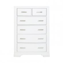 The intersection of modern lines and understated transitional style blend to create the Hudson Collection. The white finish of the dresser presents a decoratively versatile addition to your bedroom. Polished chrome bar hardware fronts the drawers of the dresser.