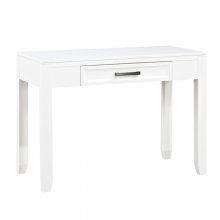 The Garretson Collection blends transitional lines with rustic styling to create an elegant addition for your bedroom, living room, or home office. The desk features a white finish, and a centrally located single drawer with a black-finished metal bar pull.