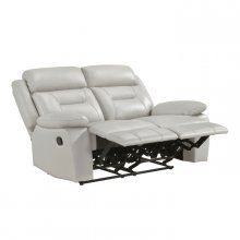 Designed with stylistic versatility and comfort in mind, the Laconia Collection’s addition to your home’s casual living room provides a comfortable gathering spot for your family and friends. The reclining ends of the love seat are engaged with a pull of the side mounted tab. The transitional frame of the love seat is covered in 100 percent top grain leather where the body touches, with faux leather covering the remaining areas, its silver hue complementing your home’s décor.