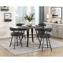 Upgrade your seating situation with the Oxton II Collection. This sleek counter height chair is the perfect companion for your counter height table or kitchen island. Boasting a swiveling semicircular seat with 360-degree rotation and a contoured back with a stylish lumbar cutout, this elevated seat offers both comfort and style. Upholstered in luxurious black faux leather for a touch of modern sophistication, the durable metal framing in a trendy gunmetal finish adds an industrial-chic vibe that ties the look together in a way that’s sure to impress. Pragmatically designed with a built-in footrail for added support, the Oxton II is as practical as it is sharp – perfect for entertaining guests or enjoying a casual meal in style. Available in black, grey, white, or red.