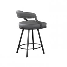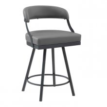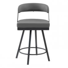 Upgrade your seating situation with the Oxton II Collection. This sleek counter height chair is the perfect companion for your counter height table or kitchen island. Boasting a swiveling semicircular seat with 360-degree rotation and a contoured back with a stylish lumbar cutout, this elevated seat offers both comfort and style. Upholstered in luxurious grey faux leather for a touch of modern sophistication, the durable metal framing in a trendy gunmetal finish adds an industrial-chic vibe that ties the look together in a way that’s sure to impress. Pragmatically designed with a built-in footrail for added support, the Oxton II is as practical as it is sharp – perfect for entertaining guests or enjoying a casual meal in style. Available in black, grey, white, or red.