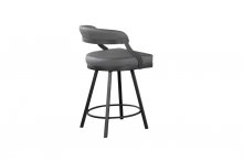 Upgrade your seating situation with the Oxton II Collection. This sleek counter height chair is the perfect companion for your counter height table or kitchen island. Boasting a swiveling semicircular seat with 360-degree rotation and a contoured back with a stylish lumbar cutout, this elevated seat offers both comfort and style. Upholstered in luxurious black faux leather for a touch of modern sophistication, the durable metal framing in a trendy gunmetal finish adds an industrial-chic vibe that ties the look together in a way that’s sure to impress. Pragmatically designed with a built-in footrail for added support, the Oxton II is as practical as it is sharp – perfect for entertaining guests or enjoying a casual meal in style. Available in black, grey, white, or red.