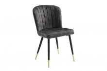 Comprised of classic elements of modern design, the Clemente Collection blends clean lines, and complementing color, with hints of refined sophistication to create a table for your casual dining room. Gray marble-print tempered glass is perched atop black metal legs, their tips capped with gold-finished metal accent. The charcoal-hued velvet seats of the collection’s side chair feature channel contoured tufting, and black-finished metal legs their leg tips capped with gold-finished metal accent
