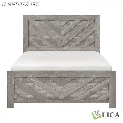 Modern lines and rustic styling are paired to create the look of the Corbin Collection. The 3D printed paper veneer’s texture is highlighted by a gray finish for a realistic wood look. A bold V-pattern defines the face of the Eastern King panel headboard and footboard, further lending to the unfettered design of the collection. The bed’s construction allows for convenient packaging within one box.
