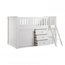 Maximizing sleep space is achieved with the stylish Galen Collection. This transitional twin low-loft bunkbed is featured in a white finish making it an appropriate choice for a number of youth bedroom settings. An angled ladder provides easy access to the loft platform. Providing below-the-bed storage are two dressers and bookcase, each specifically designed to fit within the parameters of the available lower space with the dressers providing shelf and drawer storage and the bookcase allowing for open display of your child's favorite books and collectables.