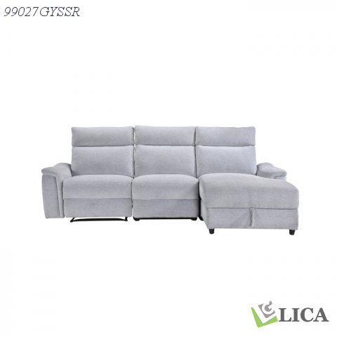 The Skava Collection unites contemporary design with modern comfort, creating the perfect seating arrangement for your living room. This refined sofa-chaise doubles down on style with a chic profile paired with airy grey chenille upholstery that serves as the ideal canvas for your decorative preferences. While the right side chaise is a great option for stretching out, the left side arm chair extends as well thanks to the tab-pull latch reclining mechanism. That is not the only convenient feature; the chaise also features a lift-top storage compartment that provides extra space, helping to keep clutter to a minimum. The cushioned track arms and tailored accent stitching are just icing on the cake of comfortably supportive seating. Effortlessly suave and inherently multi-functional, the Skava seamlessly combines flexibility and style to complement your modern lifestyle. Reverse configuration also available.