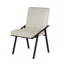 Add a touch of contemporary elegance and comfortable seating to your dining space with this cream textured fabric dining chair. Featuring a sleek black powder-coated metal base and soft textured fabric upholstery in a neutral cream color, this chair offers both style and support. The unique open design of the metal base adds a modern touch, while the padded seat and back ensure a comfortable dining experience. Perfect for dining rooms, kitchens, or as an accent chair, this chair is a chic and versatile addition to your home. Assembly is required.
