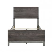 The sleek design of the Zephyr Collection pairs clean lines with modern convenience to create a style that will be the perfect palette for your design aspirations. The twin low-profile panel bed features painted metal-finish banding on the headboard’s sides and the footboard’s base rail, creating the perfect accenting contrast to the dark gray faux wood finish of the melamine veneer.
