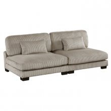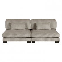 Configurable to your available space, the Traverse Collection allows for the addition and detachment of pieces for a customized seating experience. The 6-piece sectional configuration consists of two corner units paired with two armless chairs, and two ottoman. The plush taupe corduroy fabric upholstery creates a plush expanse for a soft touch experience.