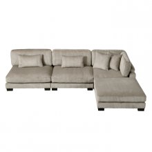 Configurable to your available space, the Traverse Collection allows for the addition and detachment of pieces for a customized seating experience. The 4-piece sectional configuration consists of one corner unit paired with two armless chairs, and an ottoman. The plush taupe corduroy fabric upholstery creates a plush expanse for a soft touch experience.