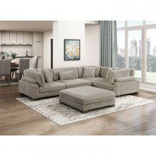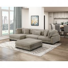 Configurable to your available space, the Traverse Collection allows for the addition and detachment of pieces for a customized seating experience. The taupe corduroy fabric upholstery creates a plush expanse for a soft touch experience. The versatility in placement of the ottoman is left to your creative vision, using it as a stand-alone unit or part of a larger configuration.