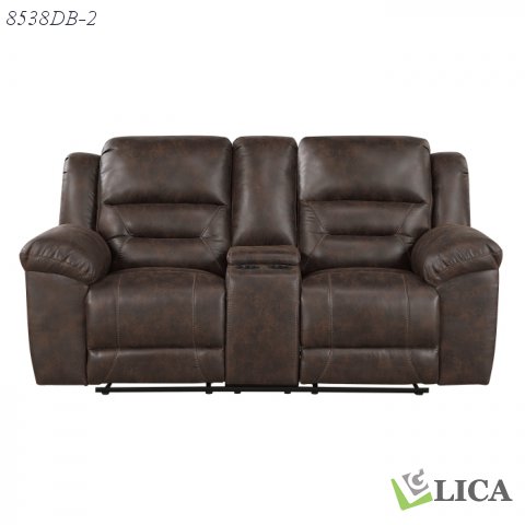 The Hazen Collection’s versatile style and functional design will be an inviting addition to your home’s living room. Dual end recliners are featured on love seat, with its center console providing secure storage of beverages via the two cupholders and a lift-top storage compartment. The reclining mechanisms of the love seat are engaged with a pull of their side mounted tabs, taking you from seated to prone in an easy motion. Dark brown polished microfiber upholstery covers the plush pillow-top arms and contoured seating, creating a perfect combination ready for relaxation.