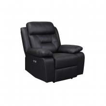 Discover unparalleled comfort with the prestigious power reclining Laconia Collection. Attired with genuine top grain leather on the fronts and high-quality leather match on the sides and back, this glider recliner’s meticulous craftsmanship and deep black hue elevates your living room to new heights of sophistication. Sink into indulgent cushioning with overstuffed headrests and plump pillow-style armrests that were designed for moments of pure relaxation. The dimple in the back cushion, accented by tailored detailing, adds a touch of refinement to the design. With customizable reclining positions, a soothing gliding motion, and a convenient USB port embedded right into the side-mounted power button, the Laconia combines luxury with modern functionality.