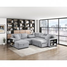 - Arm 2-seater with pull-out bed, drop down cup holders, storage rack and USB charging ports