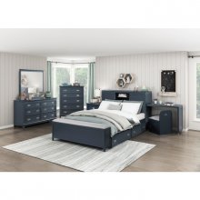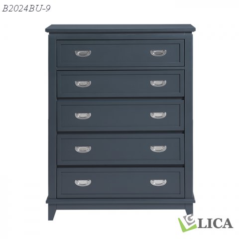 Add stylish and efficient storage to your bedroom with this navy blue 5-drawer chest. Crafted from wood with a sleek navy blue finish, this chest features five dovetail drawers with smooth ball-bearing glides for easy access to your clothing and belongings. Polished nickel-tone flush ring pulls add a touch of sophistication, and with no assembly required, this chest is ready to enhance your bedroom décor right out of the box.