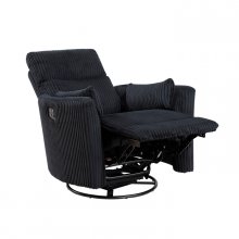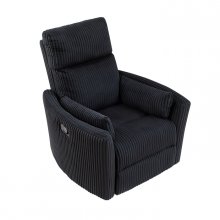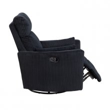 Enjoy the ultimate comfort with this swivel glider reclining chair, a perfect blend of style, functionality, and relaxation. Upholstered in soft, textured corduroy fabric, this recliner offers a cozy seating experience while adding a touch of modern sophistication to any room. The chair features a 360-degree swivel, gentle gliding motion, and an easy-to-use reclining function, making it ideal for living rooms, bedrooms, or any space where relaxation is a priority. Designed for both style and comfort, this chair combines plush cushioning with smooth reclining mechanisms, allowing you to fully recline and relax. The black color and corduroy fabric texture make it a versatile choice that complements a variety of decor styles.