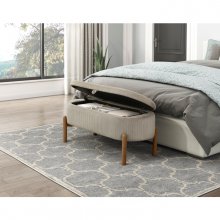 Add a touch of mid-century modern style and practical storage to your home with this taupe corduroy storage bench. Featuring a sturdy plywood frame, foam-cushioned seat, and soft corduroy fabric upholstery, this bench offers both comfort and style. The solid wood legs in a wire-brushed natural finish add a touch of warmth and elegance, while the interior storage compartment provides a convenient place to declutter your space. Perfect for entryways, bedrooms, or living rooms, this storage bench is a versatile and chic addition to any home.