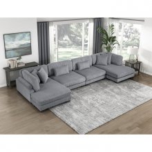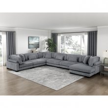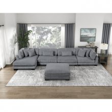 Configurable to your available space, the Traverse Collection allows for the addition and detachment of pieces for a customized seating experience. The gray corduroy fabric upholstery creates a plush expanse for a soft touch experience. The reversible chaise features two toss pillows, adjustable back and arm rest, and reversible cushions.