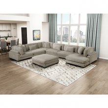 Configurable to your available space, the Traverse Collection allows for the addition and detachment of pieces for a customized seating experience. The taupe corduroy fabric upholstery creates a plush expanse for a soft touch experience. The reversible chaise features two toss pillows, adjustable back and arm rest, and reversible cushions.