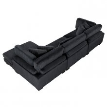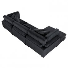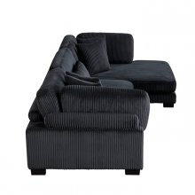 Configurable to your available space, the Traverse Collection allows for the addition and detachment of pieces for a customized seating experience. The 3-piece sectional configuration consists of one corner unit paired with one armless chair, and a chaise. The black corduroy fabric upholstery creates a plush expanse for a soft touch experience.