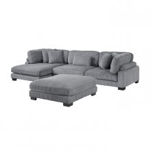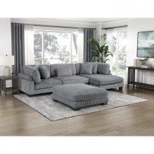 Configurable to your available space, the Traverse Collection allows for the addition and detachment of pieces for a customized seating experience. The 4-piece sectional configuration consists of one corner unit paired with one armless chair, a chaise, and an ottoman. The gray corduroy fabric upholstery creates a plush expanse for a soft touch experience.
