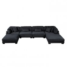 Configurable to your available space, the Traverse Collection allows for the addition and detachment of pieces for a customized seating experience. The 6-piece sectional configuration consists of two corner units paired with two armless chairs, and two ottoman. The plush black corduroy fabric upholstery creates a plush expanse for a soft touch experience.
