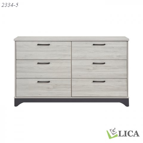 Bring a chic, contemporary update to your bedroom with this stunning two-tone dresser, ready to enhance your space without any assembly hassle. The striking combination of a light white oak wood grain and a sophisticated gray finish provides a fresh, modern aesthetic that effortlessly elevates any decor. With six spacious drawers that glide smoothly on premium ball-bearing glides, this dresser offers ample storage to organize your entire wardrobe. The sleek black-tone bar pulls provide a stylish contrast, while the durable construction ensures lasting quality and a beautiful centerpiece for your bedroom.