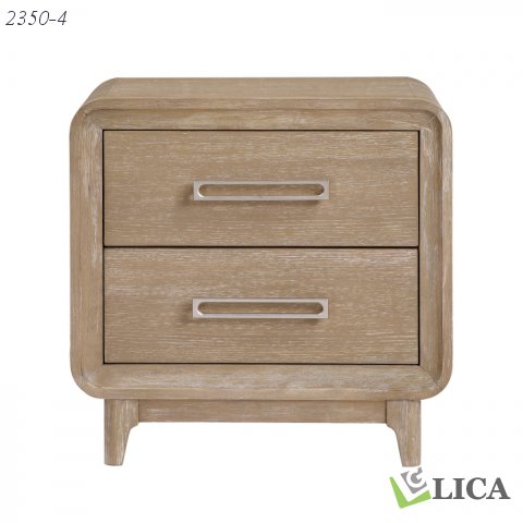 This exquisitely designed nightstand is the perfect blend of elegant style and practical bedside storage, offering a serene addition to your bedroom. Crafted from a durable combination of oak veneer, solid wood, and engineered wood, this nightstand ensures lasting stability and strength. The beautiful natural finish highlights the wood's inherent grain, creating a calming and versatile aesthetic that complements various interior styles. Featuring two spacious drawers, each constructed with sturdy dovetail joints and equipped with smooth ball-bearing glides, it provides effortless access to your bedside essentials. The refined antique nickel-tone bar pulls add a touch of classic sophistication, making this nightstand a truly distinguished and functional piece.