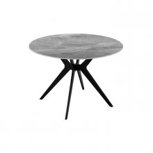Conscientiously crafted to embody style in a scaled-down format, the Sora Collection is proof that good things do come in small packages. Not only is this compact dining table the perfect size for condos, lofts, or breakfast nooks, but it is elegantly modern as well. The round top showcases a mesmerizing grey marble texture - and because it's constructed from sintered stone, it is non-porous, easier to clean, and inherently more impervious to scratches, stains, or extreme temperatures than true marble. A sturdy four-legged metal pedestal base rounds out the look with a matte black powder coating to add just a hint of industrial-chic flair. Equal parts gorgeous and practical, the Sora's thoughtful design will effortlessly transform your meal time.