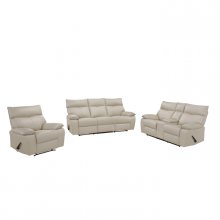 Welcome to comfort that moves with you with the Kandra Collection. Whether you’re kicking back after a long day or settling in for movie night, this reclining loveseat is designed to bring personalized relaxation into every corner of your living room. Beautifully appointed with piped seam edges for a tailored look, decadent beige top grain leather greets you on all front surfaces that touch your skin with premium faux leather PVC-match on the sides and back. You are in for a treat as you sink into the generously padded cushions, especially with the plump headrests and pillowtop arms that were made for real lounging. Not to mention the smooth reclining experience – simply pull the lever and away you go! Double-ended reclining allows both ends to recline independently so you don’t bother your seatmate. Finally, the central storage console with built-in cupholders is icing on the cake to make this seat as functional as it is suave. With durable construction and timeless style, the Kandra doesn’t just add seating to your space – it makes it feel like home.