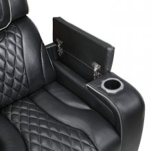 This luxurious power reclining chair redefines relaxation, offering an unparalleled experience for your home theater, living room, or man cave. Upholstered in premium 100% top-grain leather where it matters most, and designed with a robust plywood frame and metal-reinforced seat, it provides both exquisite comfort and lasting durability. Indulge in ultimate convenience with its one-touch power control, adjustable headrest, built-in storage, USB charging ports, ambient LED lighting, and invigorating heat and air massage functions, making every moment of unwinding a truly bespoke experience.
