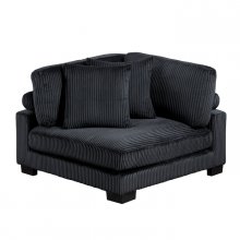 Configurable to your available space, the Traverse Collection allows for the addition and detachment of pieces for a customized seating experience. The 5-piece sectional configuration consists of three corner units paired with one armless chair, and an ottoman. The black corduroy fabric upholstery creates a plush expanse for a soft touch experience.