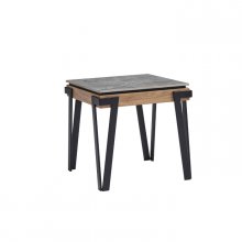 The Dawn Collection is where bold style meets everyday durability. This end table brings modern sophistication with an industrial-chic edge to your living space with a stunning mix of materials, including sintered stone atop solid wood, all supported by robust geometric metal legs in a black powder-coated finish. The sintered stone top has the luxurious appearance of rich grey marble but without the weight, cost, or maintenance issues as it effortlessly resists scratches, stains, and extreme temperatures. The top floats above the apron, which showcases a beautiful natural wood finish that contrasts against the smooth stone top and sleek metal legs. An alluring medley of colours and textures, the Dawn proves that beautiful living spaces start with creative design.