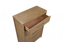 Elevate your bedroom with this sophisticated light brown hickory collection. This modern furniture set is crafted from a durable blend of hickory veneer, wood, and engineered wood, offering a timeless aesthetic and robust construction. The platform storage bed features a beautifully designed headboard and two spacious dovetail drawers on each side rail for convenient storage. The coordinating nightstand, dresser, and chest arrive fully assembled, each featuring smooth-gliding drawers with sleek pewter-tone bar pulls. The nightstand adds modern convenience with built-in power outlets and USB ports, while the matching rectangular mirror completes the look, creating an organized and elegant sanctuary.