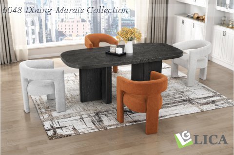 Elevate your home with this stunning dining collection, blending sophisticated modern design with inviting textures. The centerpiece is a dining table crafted from oak veneer, wood, and engineered wood with an elegant ebony finish and a textured surface, designed to seat six comfortably. The coordinating side chairs and benches are exquisitely upholstered in a soft, light-hued boucle fabric, featuring unique gentle curves and a minimalist silhouette. Each piece is built on a sturdy plywood frame for durability, with the chairs and benches arriving fully assembled for instant enhancement of your space.