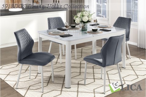 The Hollis Collection brings a touch of contemporary sophistication to your dining area with its clean lines, luxurious materials, and versatile designs. This collection features a stunning white sintered stone dining table, perfect for modern homes seeking both durability and style. Complementing the table are elegant velvet upholstered dining chairs, available in both beige and dark gray, offering plush comfort and a chic aesthetic.