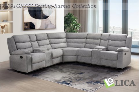 | 99091GRYSS | 3-piece Reclining Sectional with Left Side & Right Side Consoles, Grey Fabric | 387.5 | 115.75 x 115.75 x 40.5H |