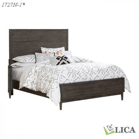 Modern lines blend with natural accent to create the look of the Norhill Collection. Wire brushed pine veneer, over pine solids, is enhanced with a gray finish that serves to highlight the light and dark accent of the grain. Rounded legs provide contrast to the clean angles of the queen bed’s profile.
