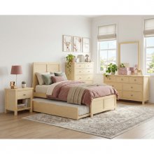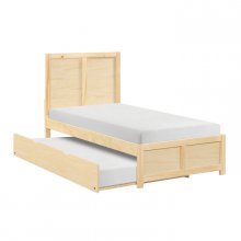 Create a bright and inviting atmosphere in any bedroom with this charming twin-size platform bed, skillfully constructed from wood, engineered wood and pine veneer. The warm, natural pine finish showcases beautiful wood grain details, offering a clean and organic look that fits perfectly with coastal, farmhouse, or modern decor. This comprehensive bed frame provides a complete sleep solution with its matching headboard and footboard, while the sturdy integrated slat system ensures superior mattress support without the extra expense of a box spring.