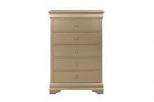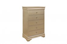 The ever popular Louis Philippe style is updated with functional accoutrements and a glamorous touch in the Abbeville Collection. Button and bale hardware grace the drawer fronts of each piece in the collection, while unbeknownst to the casual observer, there is hidden drawer storage in the nightstand, dresser and chest – each easily accessible with a pull of the front top frame. The sleigh bed furthers the timeless look of this collection. Okume veneers are elegantly highlighted with a subtle gold finish. The collection is offered in a variety of bed sizes to fit perfectly in your space.