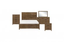 Transform your sanctuary with this premium transitional bedroom collection, blending classic elegance with modern comfort. It features a luxurious upholstered headboard and rich French oak veneer. Case goods offer superior functionality, boasting quality dovetail drawers on smooth ball bearing glides, plus the added luxury of felt lined drawers in top drawer and cedar veneer on the bottom drawers. Sophisticated antique bronze tone bar pulls complete this dark wood set.