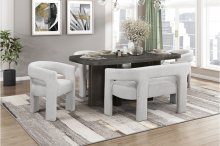 Elevate your home with this stunning dining collection, blending sophisticated modern design with inviting textures. The centerpiece is a dining table crafted from oak veneer, wood, and engineered wood with an elegant ebony finish and a textured surface, designed to seat six comfortably. The coordinating side chairs and benches are exquisitely upholstered in a soft, light-hued boucle fabric, featuring unique gentle curves and a minimalist silhouette. Each piece is built on a sturdy plywood frame for durability, with the chairs and benches arriving fully assembled for instant enhancement of your space.