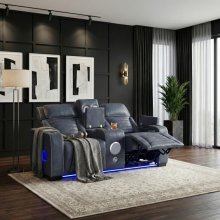 Elevate your home cinema experience with this sophisticated power double reclining loveseat, designed for those who demand both comfort and high-tech utility. Wrapped in top-grain leather where it touches your body, this seat features a built-in wireless speaker system with a subwoofer for immersive audio. Indulge in advanced back air massage and heated seating while keeping devices powered via USB-C charging ports. Its space-saving wall-hugger design ensures a premium fit in any modern living space.